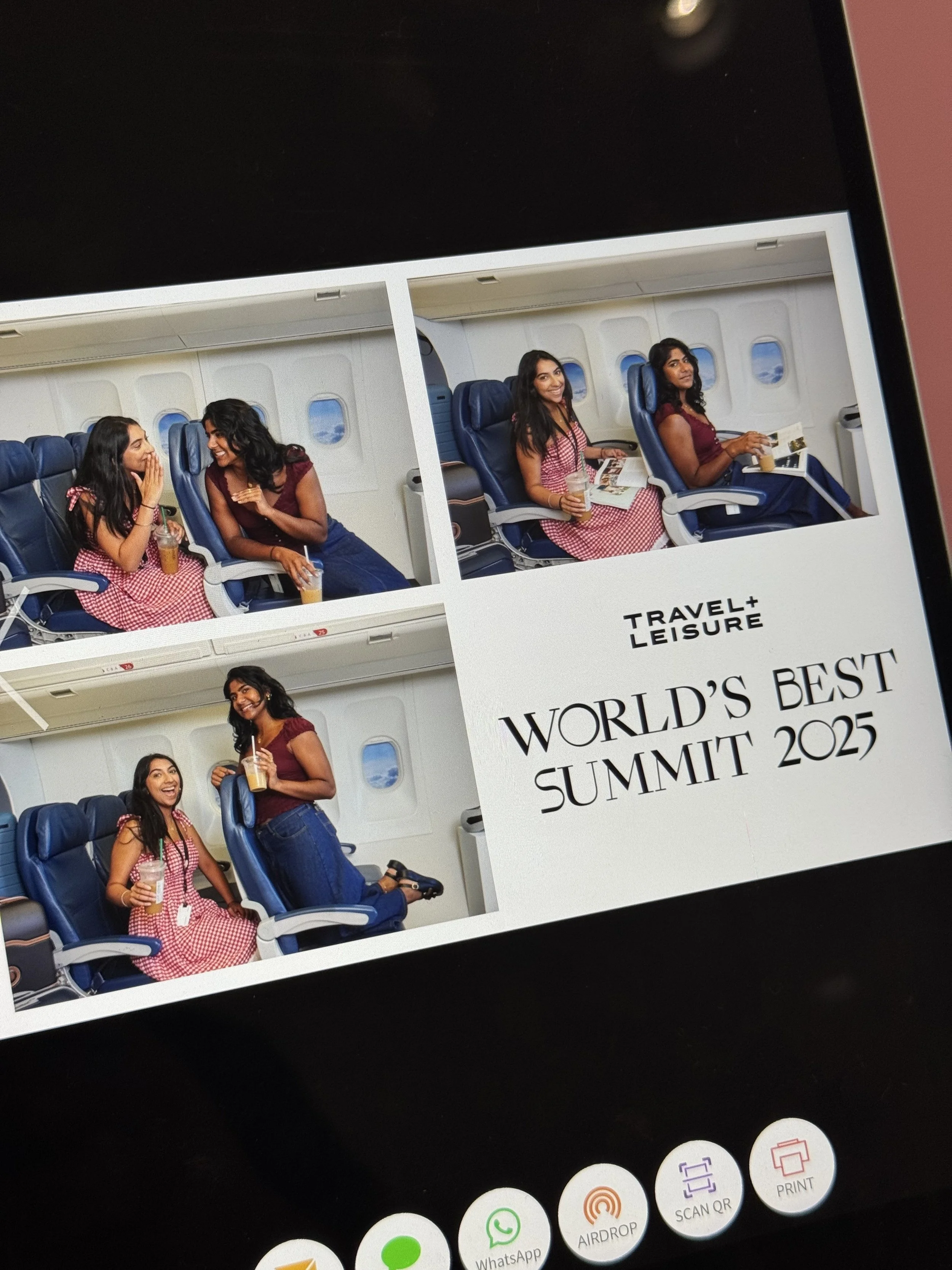 Rent My Booth customized every touchpoint. Photo layouts were designed to feel like mini magazine covers, with the Travel + Leisure logo and the World’s Best Summit title clearly displayed. Text messages sent to guests after each session were also branded and customized with shareable download links.